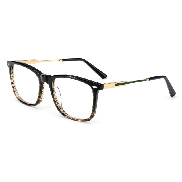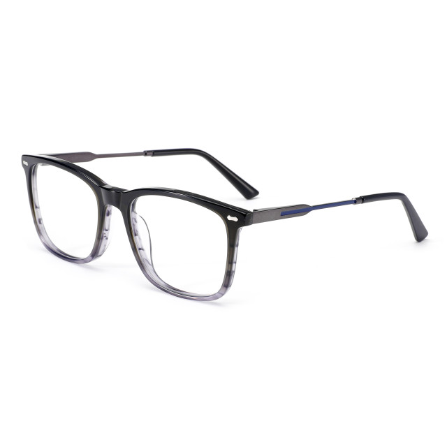 Materials: Hand made acetate front, flex hinge double color metal temple.Acetate tip.